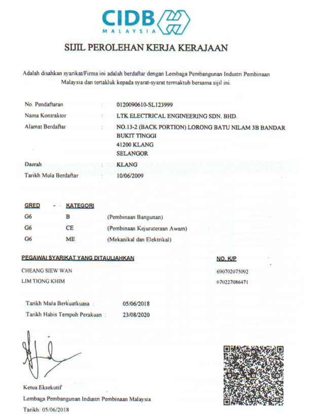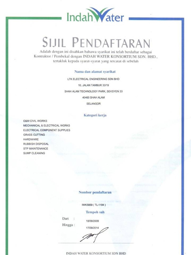 HOME I ABOUT US I PROJECTS I CERTIFICATE RECOGNITION I CONTACT US Copyright © LTK Electrical Engineering Sdn Bhd. All Rights Reserved